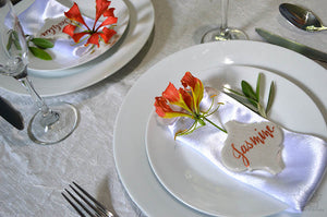 Add a unique custom calligraphy name cards for your wedding, birthday party, and events. We can work with any materials (for example: shells, tiles, paper, etc.)