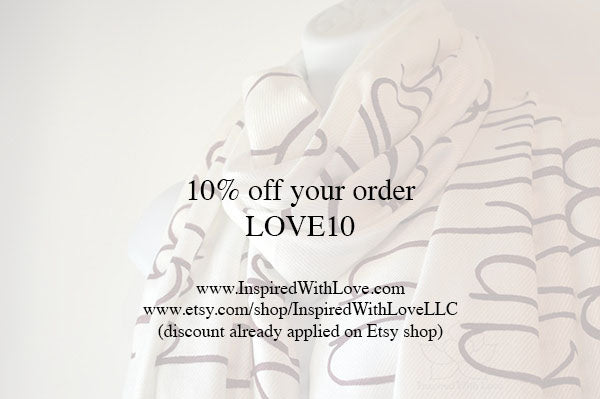 Welcome to Inspired With Love! Home of the Original Custom Script Scarves & Pocket Squares. We offer inspiring & bespoke wearable accessories & gifts, Bridesmaid & Groomsmen Proposal, Calligraphy Wedding & Anniversary gifts, Engagement Proposal, Scripture Prayer Shawl, Literary Book Quote scarves, or simply gifts for all occasions. We believe in creating unique custom beautiful artisan, high quality products that are designed especially for you.