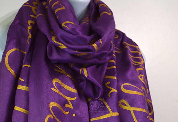 **Please note: These are hand-painted script on scarf. Each individual scarves are unique and may not look exactly like the photo. Most of our products are made-to-order. Please allow some processing time prior to shipping. Our turnaround time is updated regularly in our FAQ section.