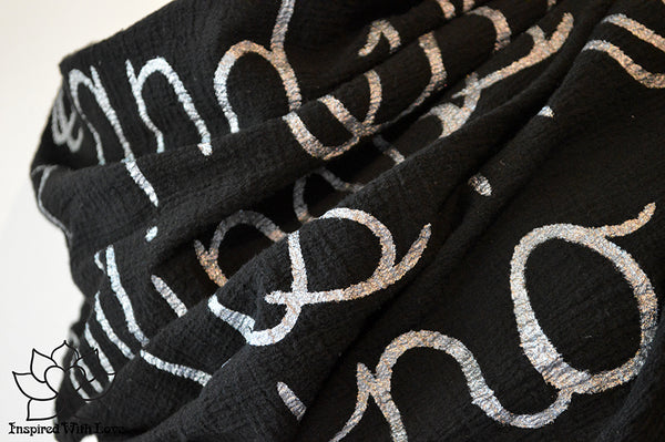 Custom Message 100% Cotton Gauze Black Shawl (Made to Order)