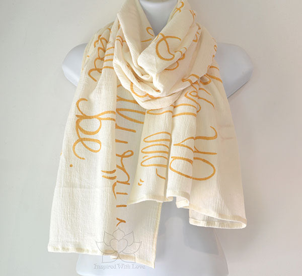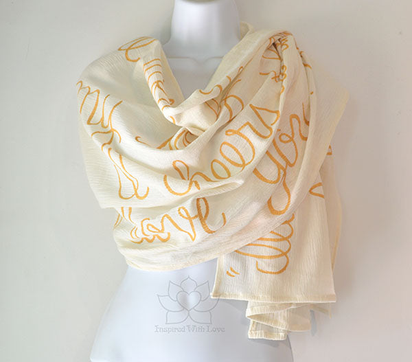 **Please note: These are hand-painted script on scarf. Each individual scarves are unique and may not look exactly like the photo. Please allow approximately 1-2 weeks prior to shipping as these are custom make, but we typically ship before 1 week. If you need it by a certain date, please send us a message.
