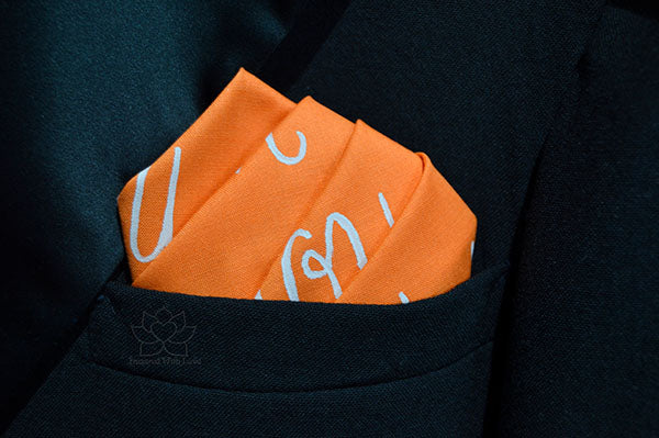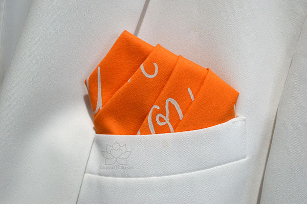 Custom 100% Classic Cotton Hand-painted Script Orange Pocket Square - Made to Order