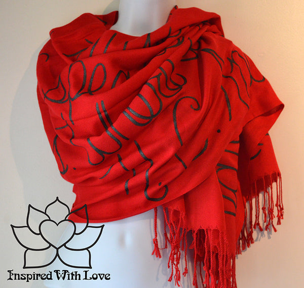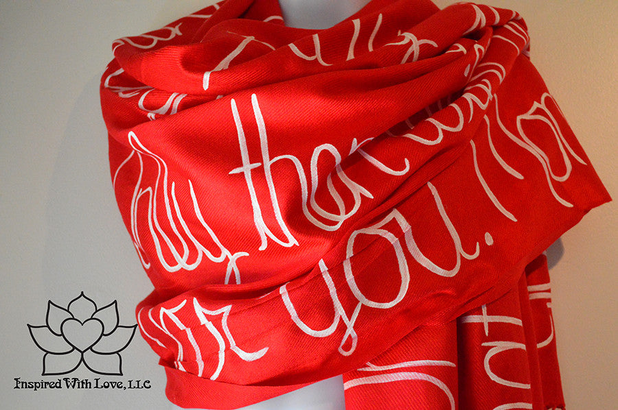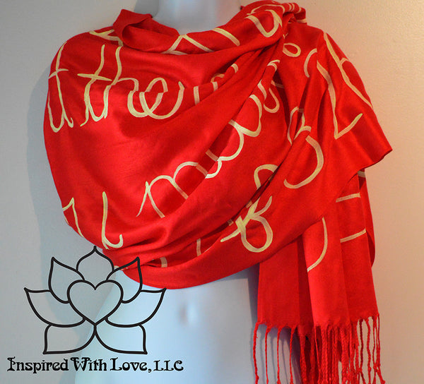 Custom Hand-painted Script Pashmina Red Scarf (Pashmina/Silk blend) - Made to Order