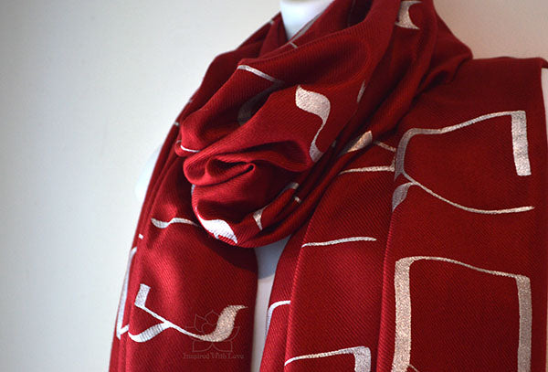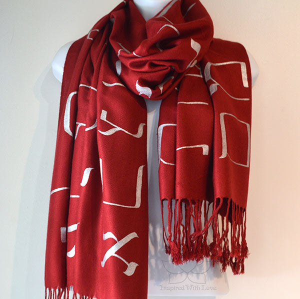 Custom Hand-painted Hebrew Alphabet Script Maroon Scarf (100% Viscose) - Made to Order