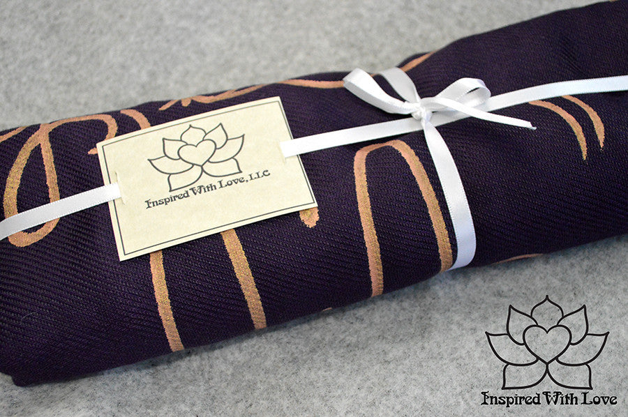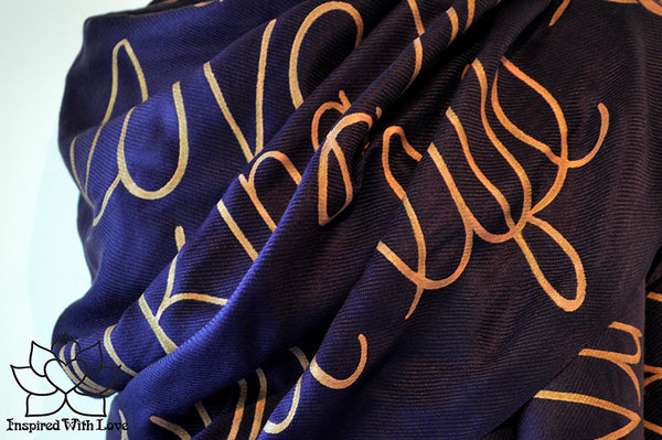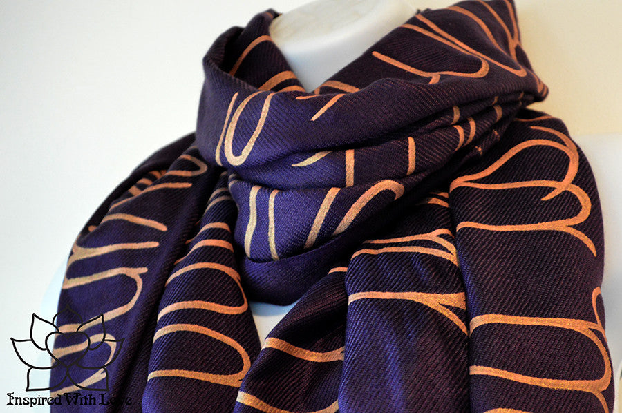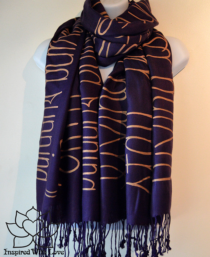 Custom personalized hand-painted pashmina script Eggplant scarf. Completely customizable. Choose your favorite quote, message, phrase. Contain a hidden secret message on the inside and looks like an abstract pattern when worn. Exclusively created by Inspired With Love.