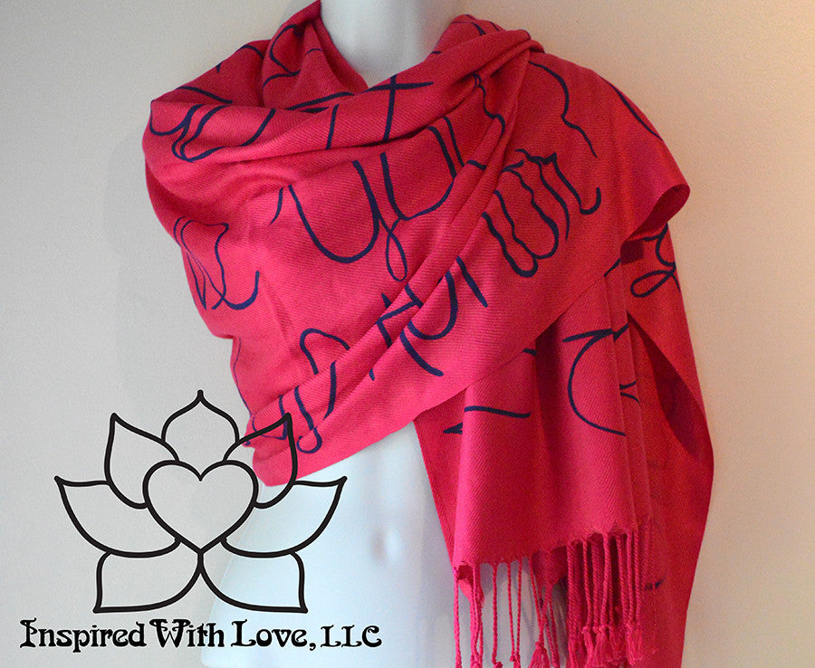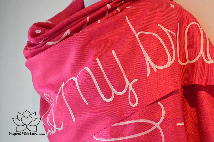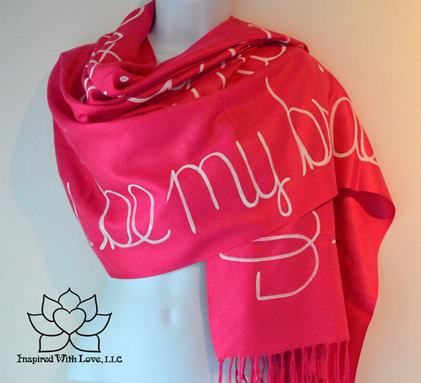 Custom Hand-painted Script Pashmina Fuchsia Scarf (Pashmina/Silk blend) - Made to Order