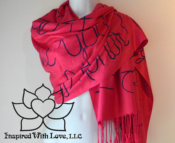 **Please note: These are hand-painted script on pashmina scarf. Each individual scarves are unique and may not look exactly like the photo. Please allow approximately 1-2 weeks prior to shipping as these are custom make, but we typically ship between 1-4 business days. If you need it by a certain date (sooner than 2 weeks), please include the date in the note. All scarves will be shipped via USPS Priority Service.