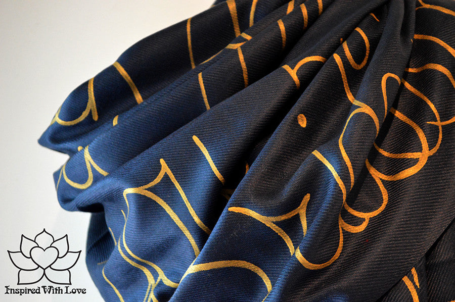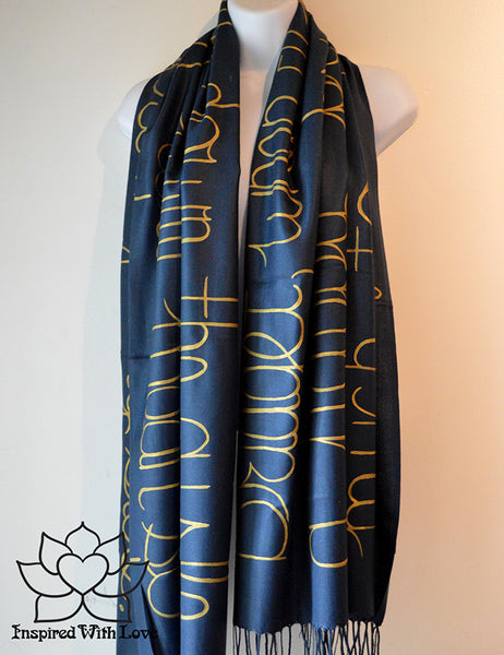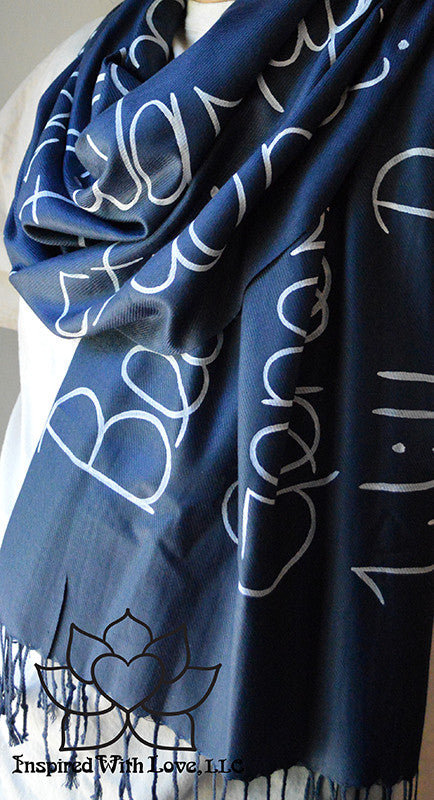 Custom Hand-painted Script Pashmina Navy Scarf (Pashmina/Silk blend) - Made to Order