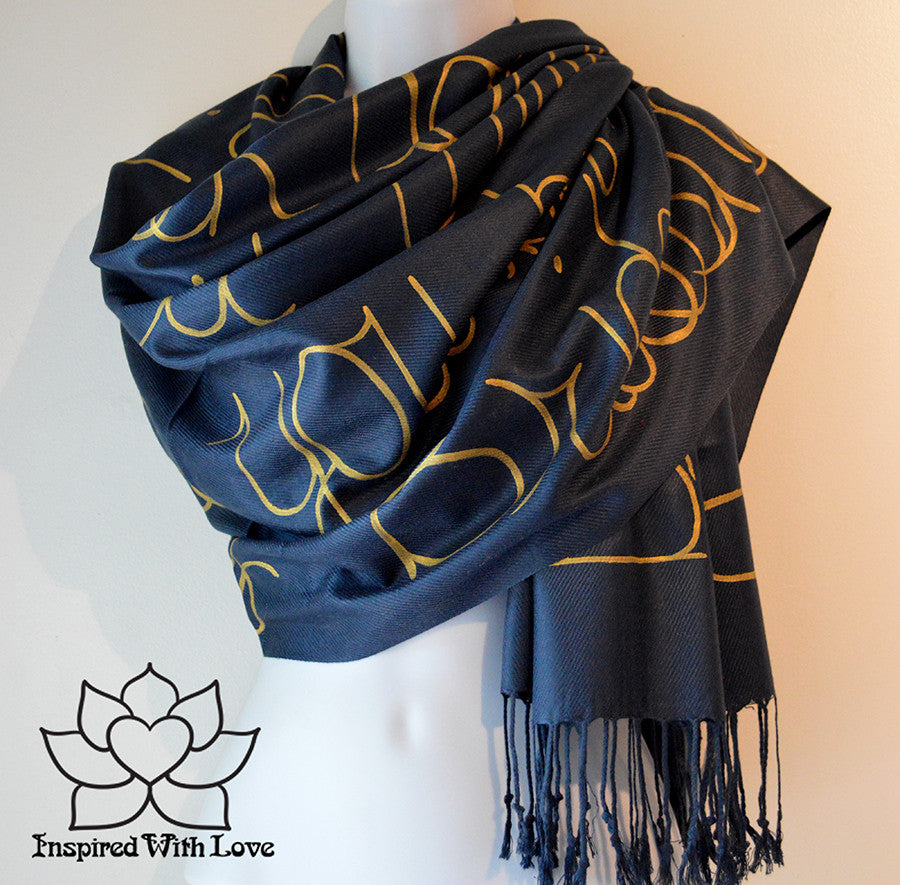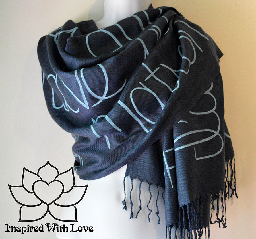 **Please note: These are hand-painted script on pashmina scarf. Each individual scarves are unique and may not look exactly like the photo. Please allow approximately 1-2 weeks prior to shipping as these are custom make, but we typically ship between 1-4 business days. If you need it by a certain date (sooner than 2 weeks), please include the date in the note. All scarves will be shipped via USPS Priority Service.