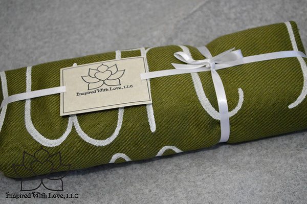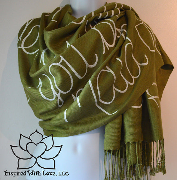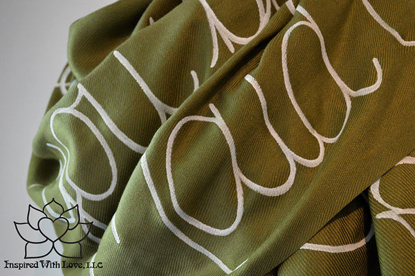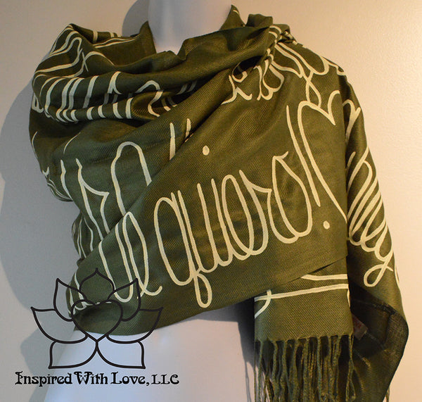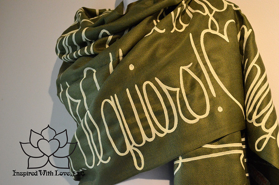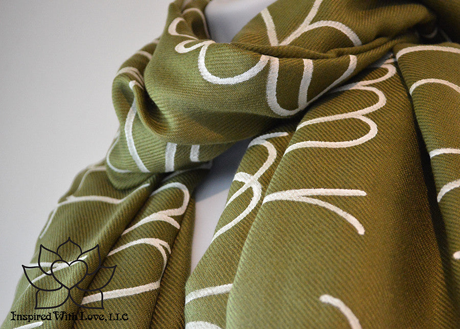Custom Hand-painted Script Pashmina Olive Green Scarf (Pashmina/Silk blend) - Made to Order