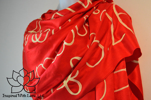 Custom Hand-painted Script Pashmina Red Scarf (Viscose/Acrylic blend) - Made to Order