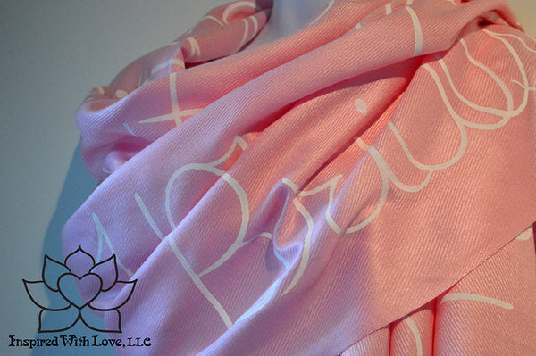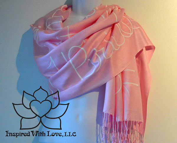 Custom Hand-painted Script Pashmina Pink Scarf (Viscose/Acrylic blend) - Made to Order