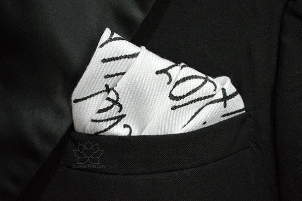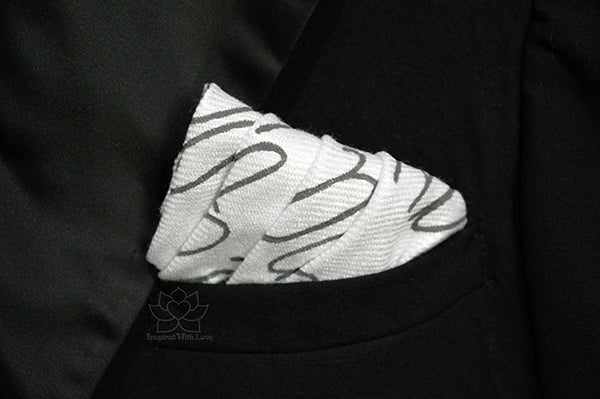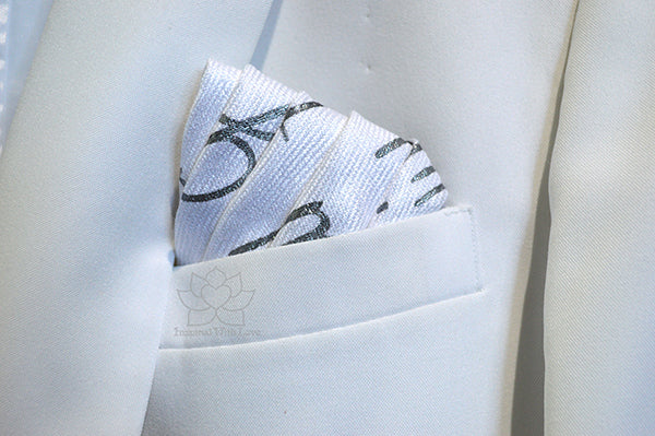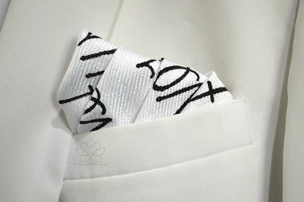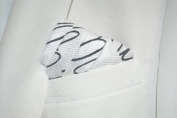 Custom Hand-painted Script White Pocket Square - Made to Order