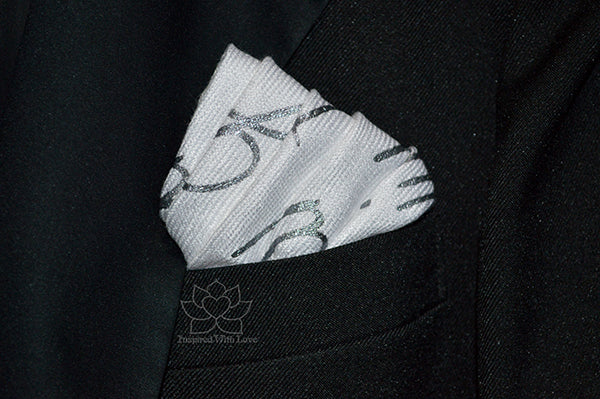 **Please note: These are hand-painted script on pocket square. Each individual pocket square are unique and may not look exactly like the photo. Please allow approximately 1-2 weeks prior to shipping as these are custom make, but we typically ship between 3-7 business days. If you need it by a certain date (sooner than 2 weeks), please include the date in the note.