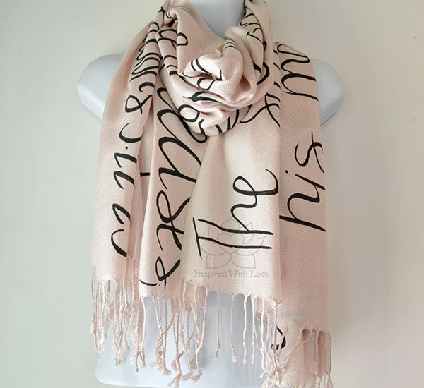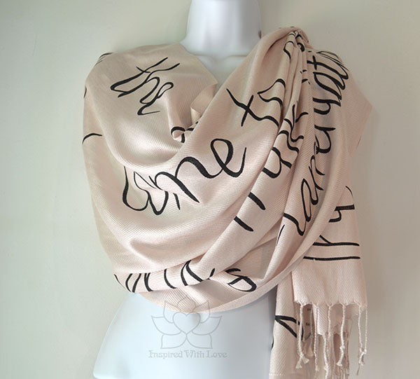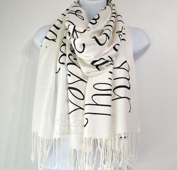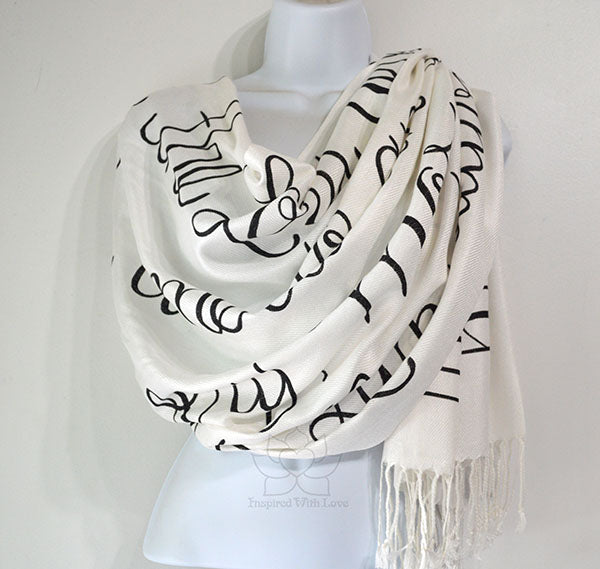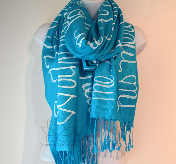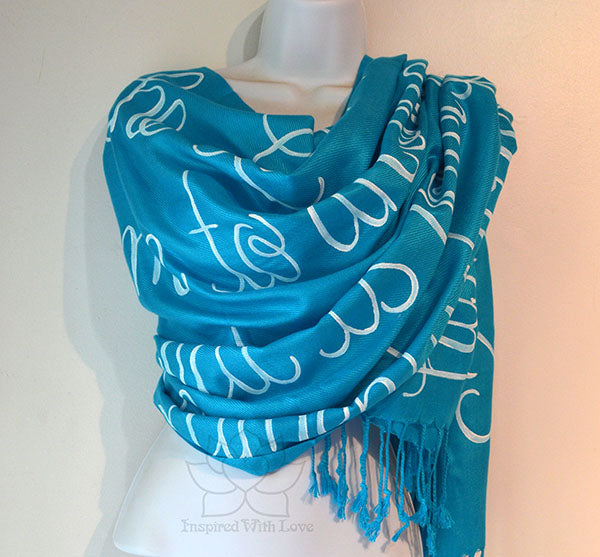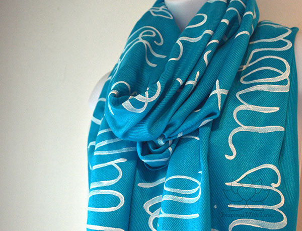 **Please note: These are hand-painted script on scarf. Each individual scarves are unique and may not look exactly like the photo. Most of our products are made-to-order. Please allow some processing time prior to shipping. Our turnaround time is updated regularly in our FAQ section.