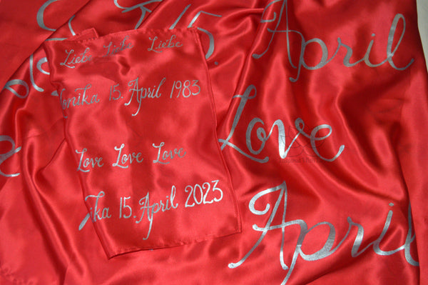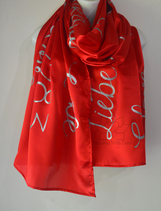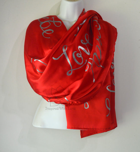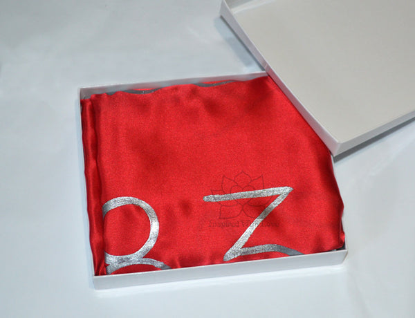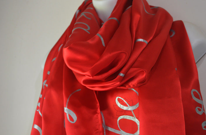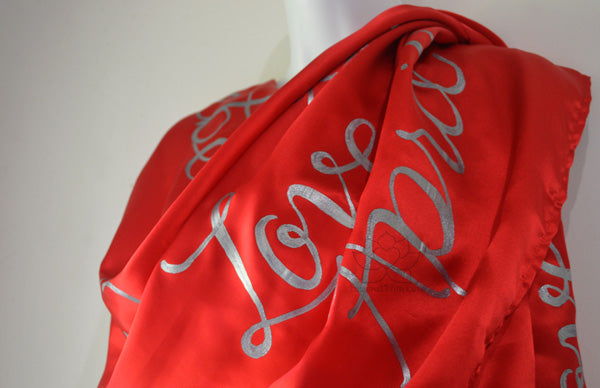 Custom Script Message 100% Silk Solid Red Scarf (Made to Order) - Inspired With Love