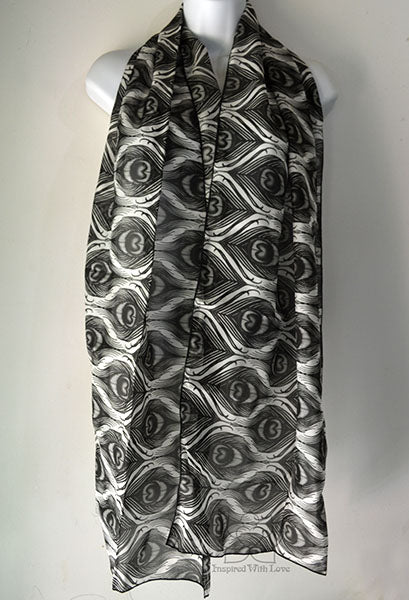 Original Black & White Monotone Peacock Feather Design Printed Scarf