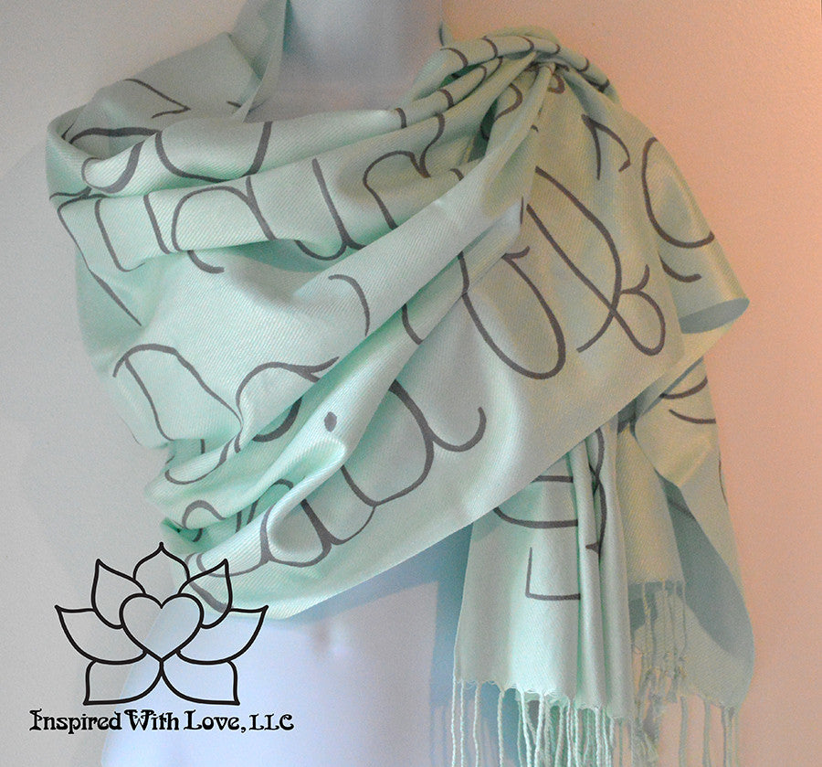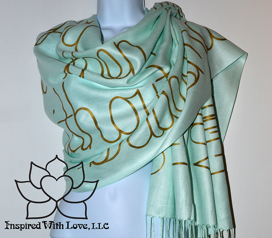 **Please note: These are hand-painted script on pashmina scarf. Each individual scarves are unique and may not look exactly like the photo. Please allow approximately 1-2 weeks prior to shipping as these are custom make, but we typically ship between 1-4 business days. If you need it by a certain date (sooner than 2 weeks), please include the date in the note.