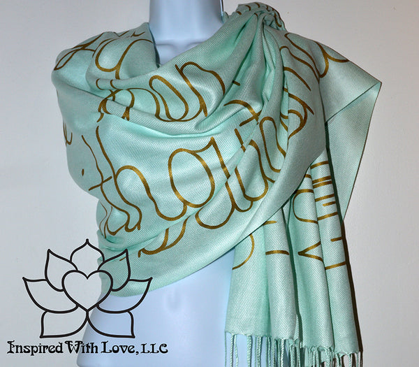 Custom Hand-painted Script Pashmina Mint Scarf (Viscose/Acrylic blend) - Made to Order