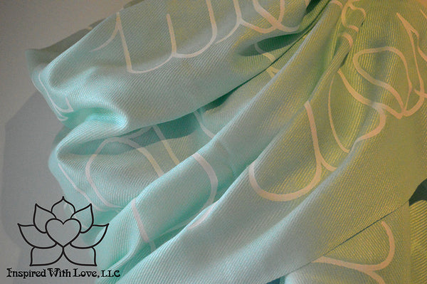 Custom personalized hand-painted pashmina script Mint scarf. Completely customizable. Choose your favorite quote, message, phrase. Contain a hidden secret message on the inside and looks like an abstract pattern when worn. Exclusively created by Inspired With Love.