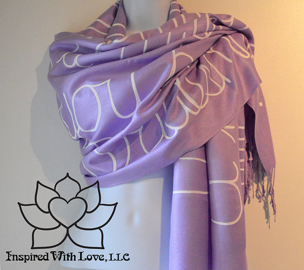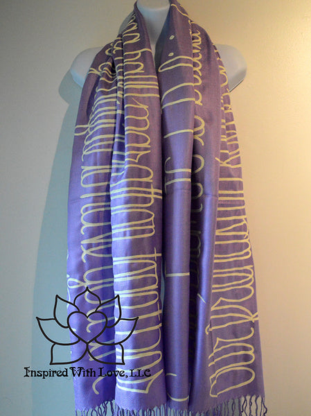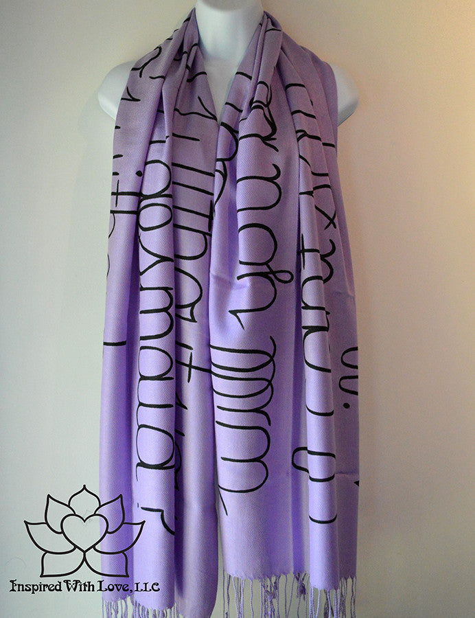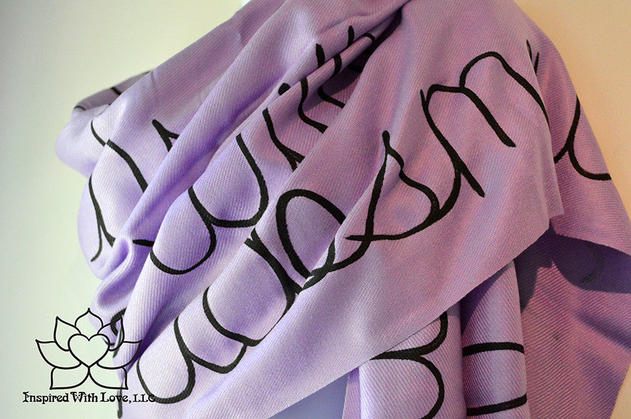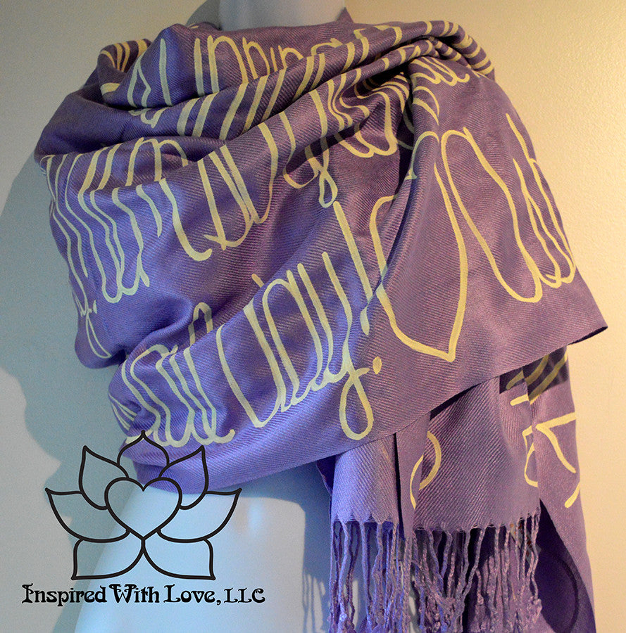 Custom Hand-painted Script Pashmina Lavender Scarf (Pashmina/Silk blend) - Made to Order