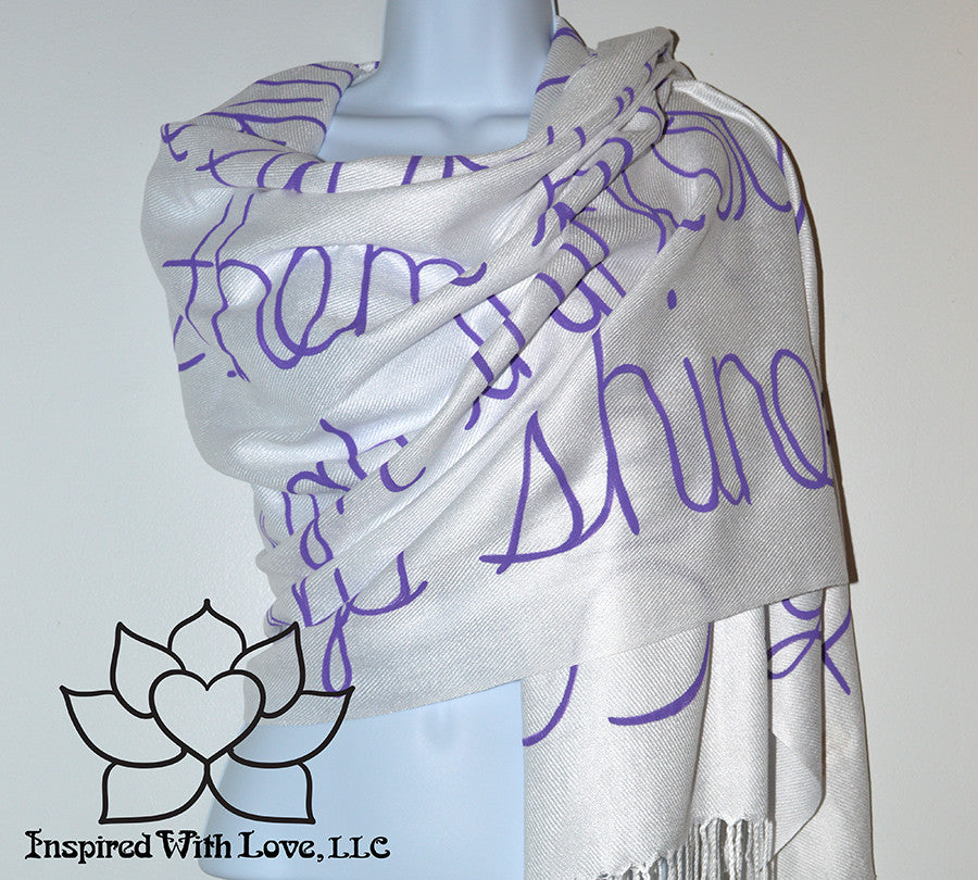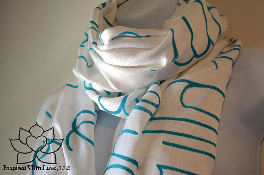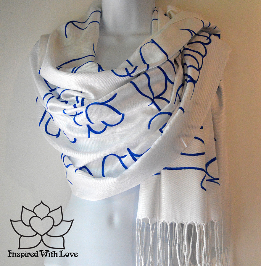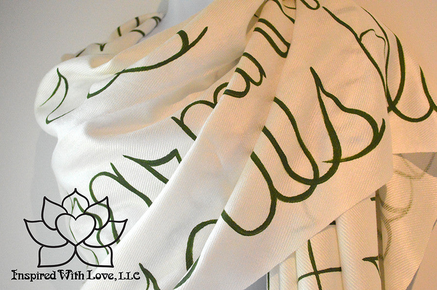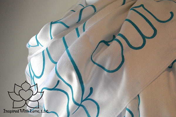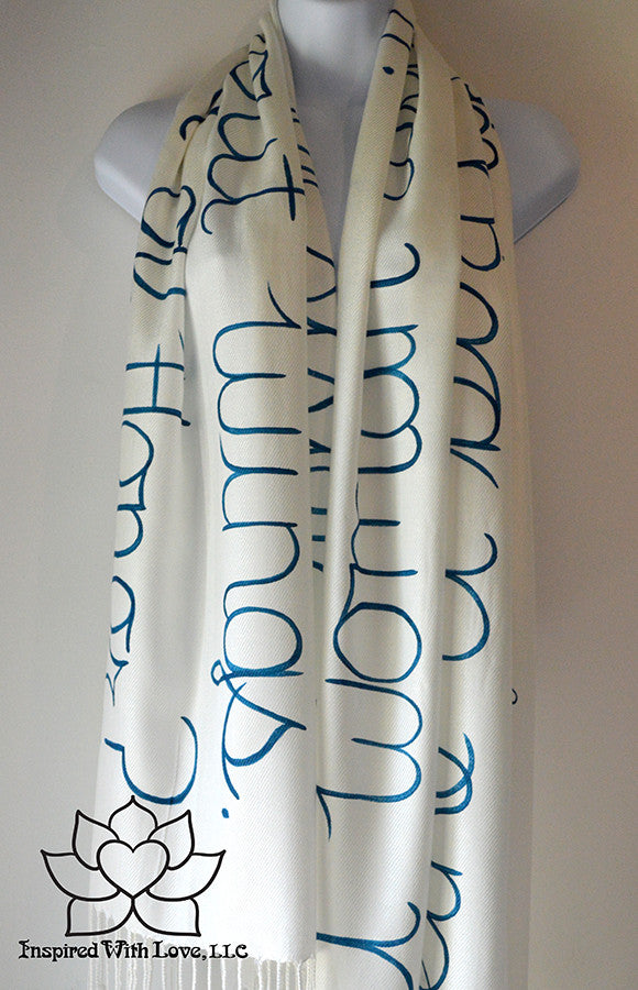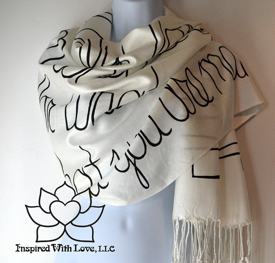 **Please note: These are hand-painted script on pashmina scarf. Each individual scarves are unique and may not look exactly like the photo. Please allow approximately 1-2 weeks prior to shipping as these are custom make, but we typically ship between 1-4 business days. If you need it by a certain date (sooner than 2 weeks), please include the date in the note. All scarves will be shipped via USPS Priority Service.
