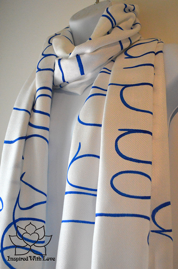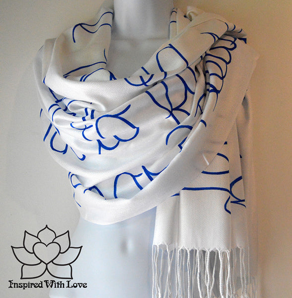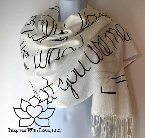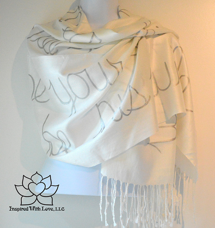 Custom Hand-painted Script Pashmina White Scarf (Pashmina/Silk blend) - Made to Order