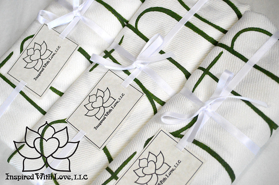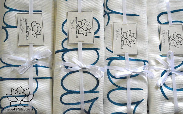 **Almost all of our products are made-to-order and custom made with your personalized message and preferred fabric & script colors.**